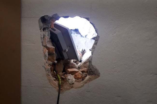 Строители разобрали небольшой участок стены, сделали проем и увидели большое количество строительного мусора: кирпичи, битум и тому подобное. А также нашли кошелек.