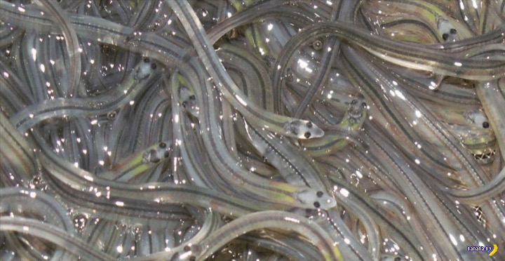 Это мальки речного угря, настолько юные, что почти прозрачные. Ловят их в определенное время по ночам сеткой с очень маленькими ячейками. Идут на приготовление нескольких блюд, которые считаются деликатесными. Интересно, что с гастрономической точки зрения блюда эти так себе, раньше мальков просто скармливали свиньям и курам. Но со временем кто-то придумал, что раз мальков достаточно сложно добыть, то они должны дорого стоить. А те, кто могут позволить себе купить их по 1000 евро за килограмм, очень довольны – понты дороже денег.