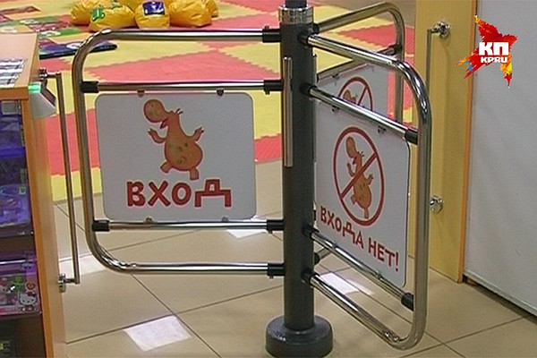 Нарушает требования пожарной безопасности и вертушка-турникет на входе в детскую игровую зону –это препятствует эвакуации посетителей. Но и если бы не было вертушки, проход очень узкий.
