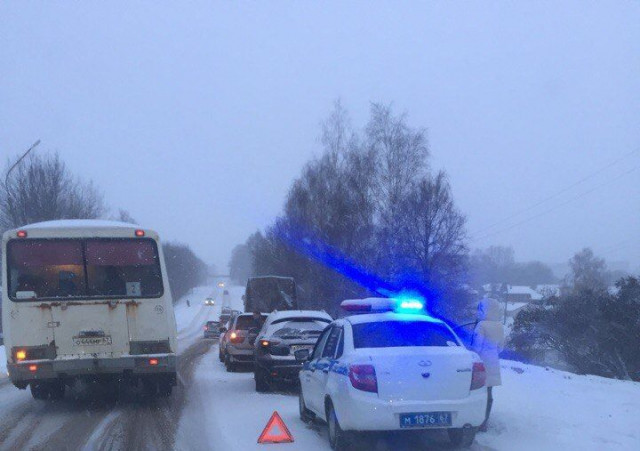 О лобовом ДТП в Екимовичах перед Десногорском Смоленской области сообщается в соцсетях. Авария произошла сегодня, 30 марта к вечеру.