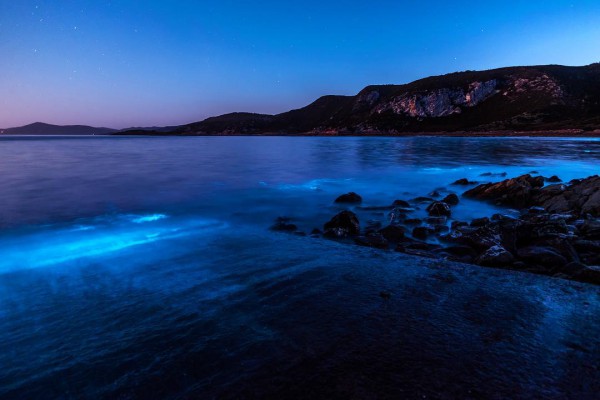 Посетители австралийского национального парка Роки Кейп, расположенного на северо-востоке Тасмании, вечером 13 марта заметили необычное “неоновое“ свечение, исходящее от воды. В социальных сетях появилось множество красочных изображений.