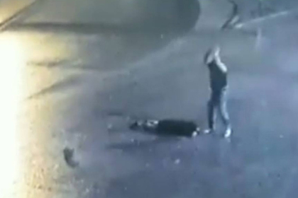 В соцсетях появилось видео с камеры наблюдения, на котором видно, как девушка лежит на трассе, а мужчина избивает ее ногами. Затем он берет большой камень и разбивает им голову девушки. Мимо проезжают автомобили, водители или пассажиры которых не реагируют на происходящее.