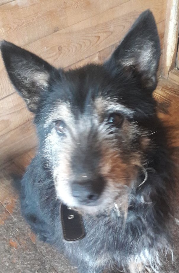 Так и вела себя Черныша. Немолодая сука терьеристого вида сидела как школьница-отличница (поставив лапки вместе) посреди выгульной части вольера. Казалось что вот сейчас она поднимет лапу, чтобы ответить на вопрос учителя. И только хвост, который мечется из стороны в сторону, выдавал ее нетерпение. Конечно это сработало.