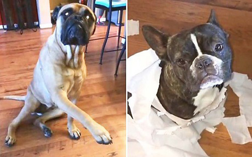 В этом видео один пес предает своего друга. Хозяйка спрашивает у него, кто разорвал всю туалетную бумагу. И тот не задумываясь указывает лапой на виновника.