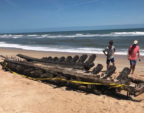 Обломки старинного судна нашли жители округа Сент-Джонс — Джулия Тёрнер и её восьмилетний сын. По их словам, они сначала приняли странную конструкцию за часть пирса или забора. Но когда подошли поближе и рассмотрели, то поняли, что это старый корабль.