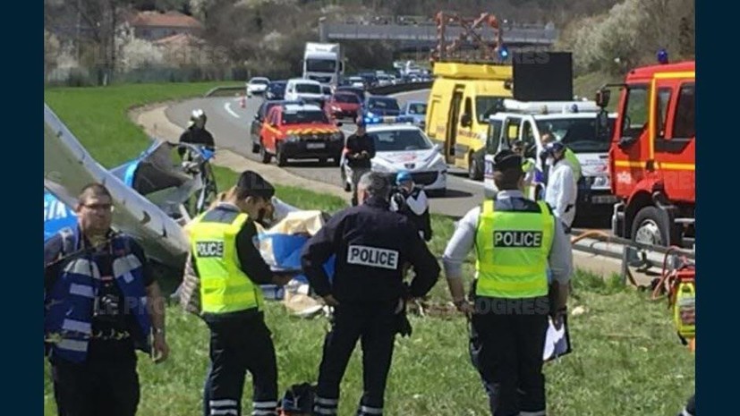 Как отмечается, пилот потерял управление, и двухмоторный самолёт задел дорожные знаки, после чего упал на автомобильную трассу.