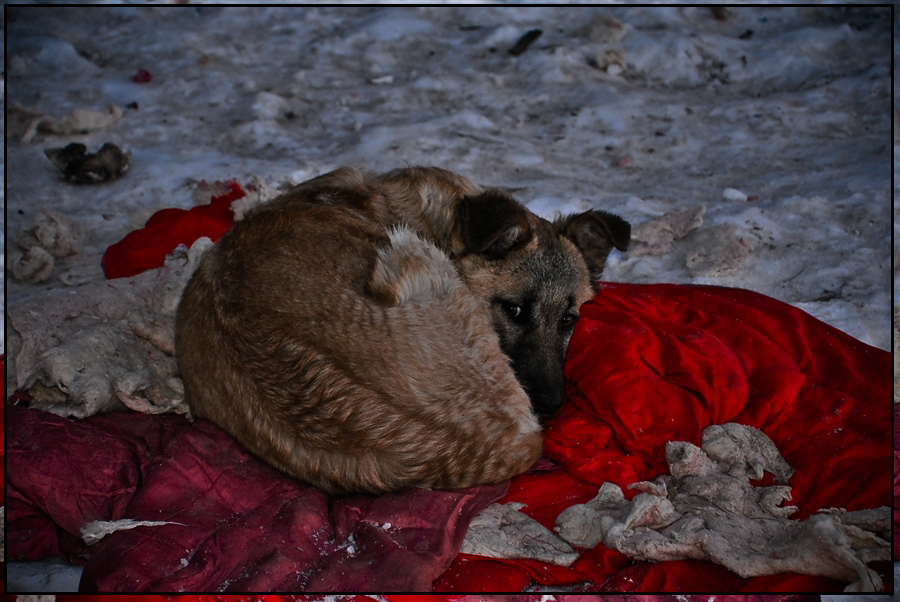 Какие то бессердечные индивиды в январские морозы бросили семимесячного щенка в лесном массиве, а что бы щенок не побежал за ними, специально подкинули ему свои вещи: старый женский пуховик и одеяло, которыми щенок принялся радостно играть. Только наигравшись, он не нашел своих хозяев и начал паниковать, громко лаем звать на помощь.