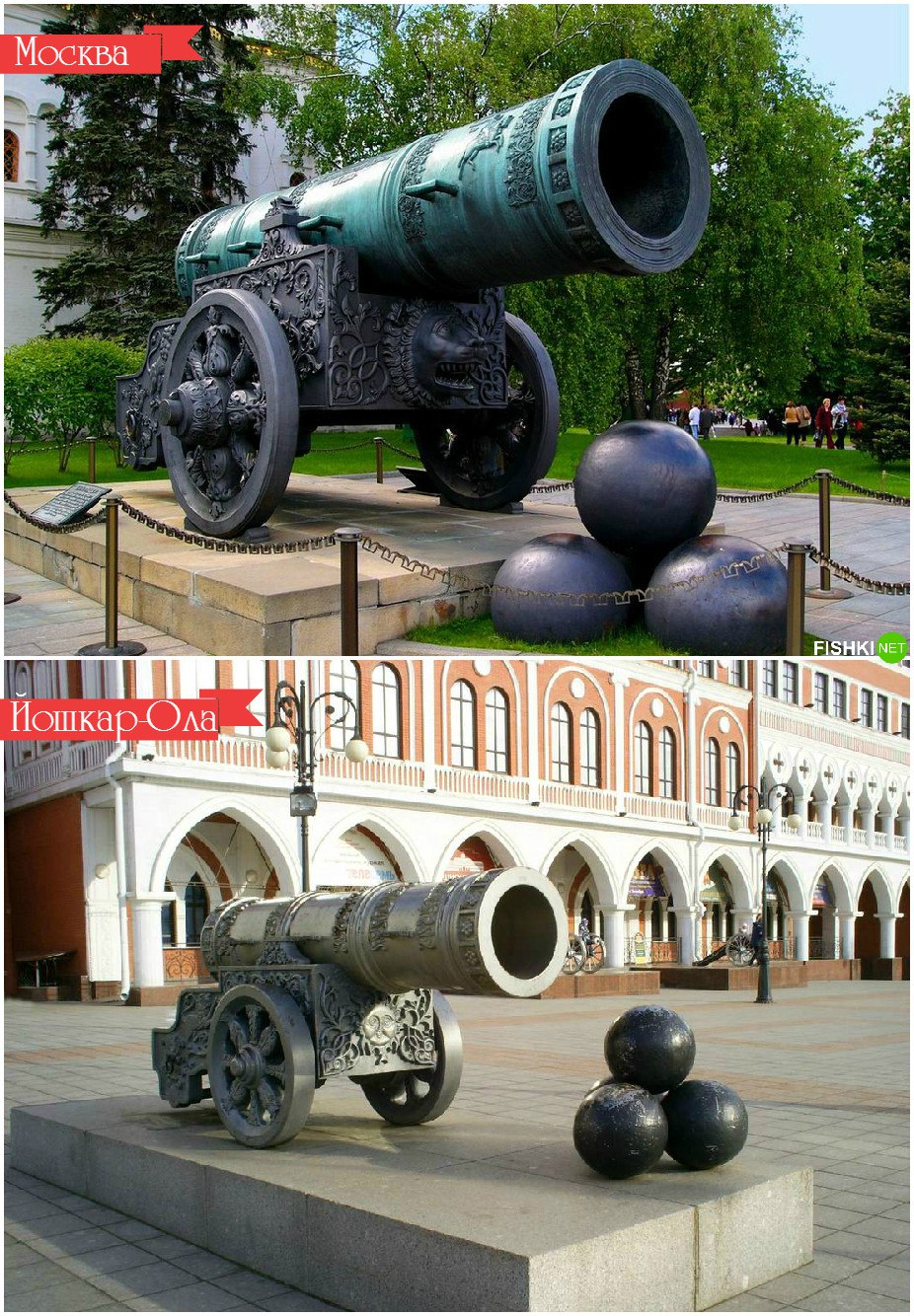 А вот в 2007 году здесь была установлена копия Царь-пушки, отлитая в масштабе 1:2. Так что, москвич, приехав в Йошкар-Олу, может легко перепутать, где он находится).