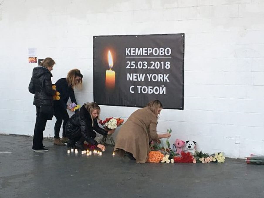 Жители Нью-Йорка создали мемориал памяти жертв пожара в кемеровском ТРЦ