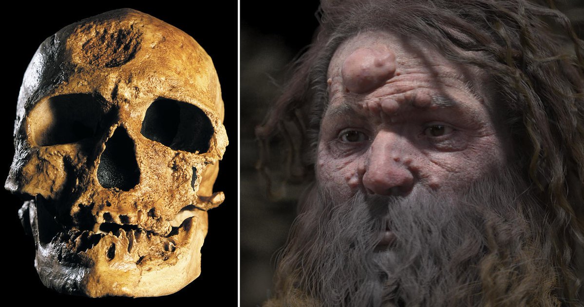 Согласно проведенным исследованиям, найденные останки принадлежали мужчине в возрасте 50 лет, который страдал от нейрофиброматоза — наследственного заболевания, которое вызывает множественные доброкачественные опухоли. Этот факт ученые также учли при реконструкции внешности кроманьонца, лицо которого «покрыли» заметными новообразованиями и большой шишкой на лбу.