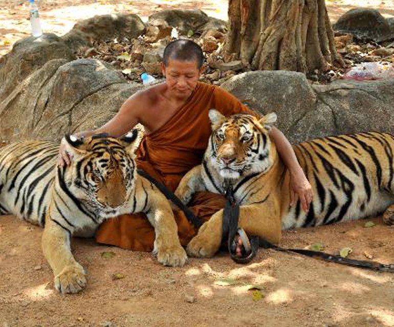 На западе Таиланда существует монастырь, посетители которого могут кормить тигров и фотографироваться с ними. Однако денег от продажи билетов администрации оказалось недостаточно: несколько тигров были проданы контрабандистам.