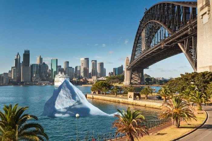 1 апреля 1978 года жители австралийского Сиднея с удивлением обнаружили гигантский айсберг, плавающий прямо в городской гавани. За несколько дней до розыгрыша местный предприниматель Дик Смит объявил, что айсберг был доставлен прямо из Антарктиды. Публика была взбудоражена, а представители австралийского военно-морского флота даже предложили Смиту помощь в швартовке. Шумиха продолжалась до тех пор, пока не пошел дождь и не смыл пожарную пену с листов из белого пластика, из которых на самом деле состоял «айсберг».
