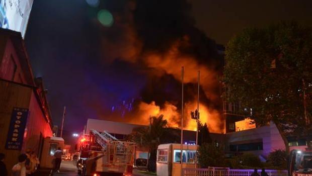 Огонь быстро распространился по бамбуковым строительным лесам, которые установили ...