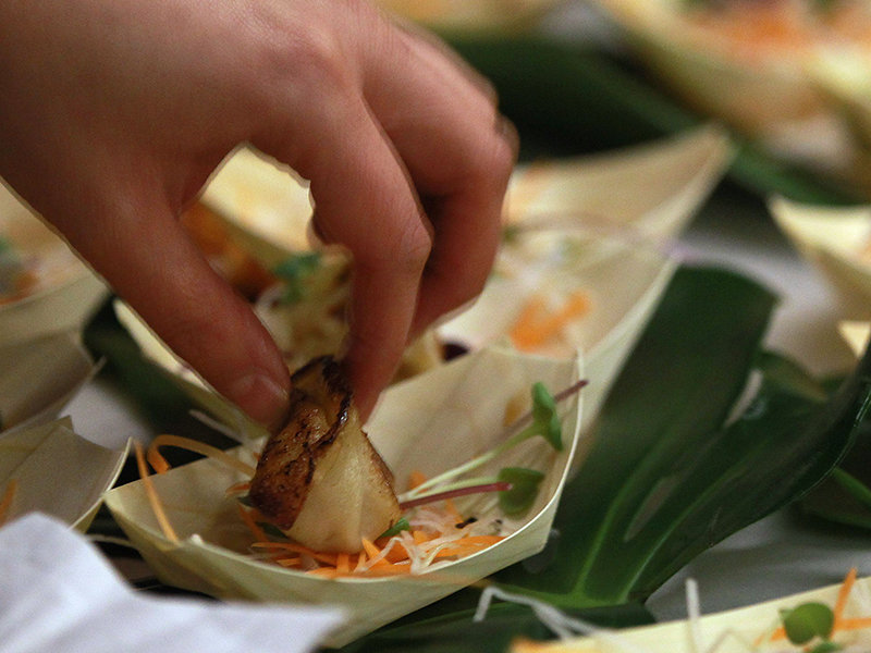 В меню значатся сплошные деликатесы, сложные салаты с необычной заправкой, десерты ручной работы. Так, среди холодных закусок фигурирует запеченная буженина и ростбиф, террин из телятины с грибами и соусом из тропических фруктов, палантин из цыпленка с перепелиным яйцом и лососевой икрой.