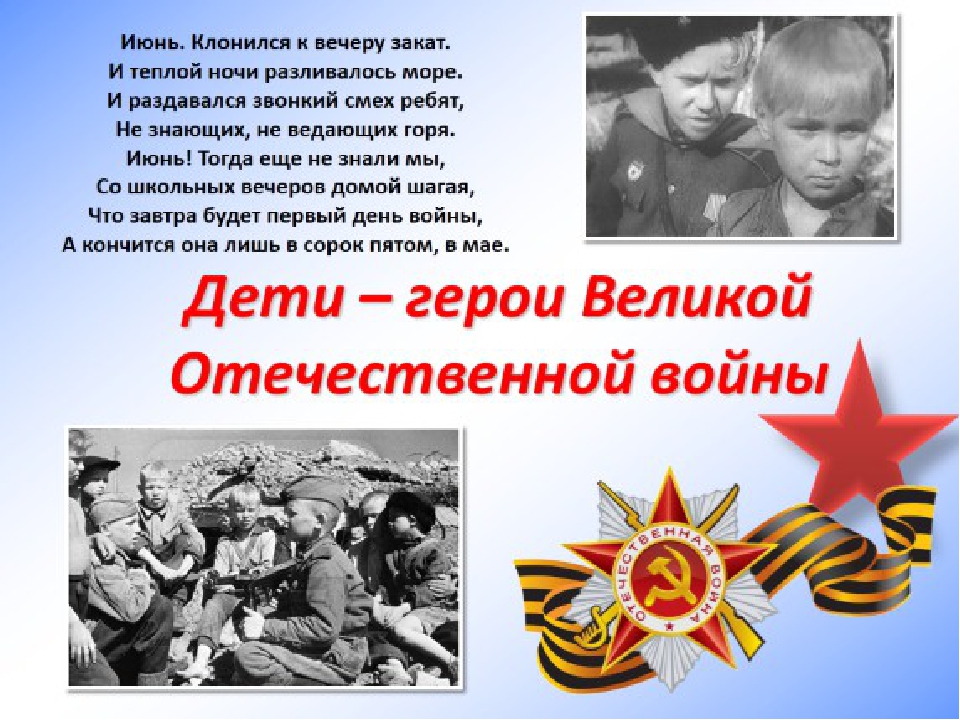 Вот например история про таких юных героях: Казей Марат Иванович (1929-1944), партизан Великой Отечественной войны, Герой Советского Союза (1965, посмертно). С 1942 г. разведчик партизанского отряда (Минская область). В деревню, где жил Марат с мамой, Анной Александровной, ворвались фашисты. Осенью Марату уже не пришлось идти в школу в пятый класс. Школьное здание фашисты превратили в свою казарму. Враг лютовал. За связь с партизанами была схвачена Анна Александровна Казей, и вскоре Марат узнал, что маму повесили в Минске. Гневом и ненавистью к врагу наполнилось сердце мальчика. Вместе с сестрой Ад ой Марат Казей ушел к партизанам в Станьковский лес. Он стал разведчиком в штабе партизанской бригады. Проникал во вражеские гарнизоны и доставлял командованию ценные сведения. Используя эти данные, партизаны разработали дерзкую операцию и разгромили фашистский гарнизон в городе Дзержинске. Марат участвовал в боях и неизменно проявлял отвагу, бесстрашие, вместе с опытными подрывниками минировал железную дорогу. Марат погиб в бою. Сражался до последнего патрона, а когда у него осталась лишь одна граната, подпустил врагов поближе и взорвал их... и себя. За мужество и отвагу пятнадцатилетний Марат Казей был удостоен звания Героя Советского Союза. В городе Минске поставлен памятник юному герою.