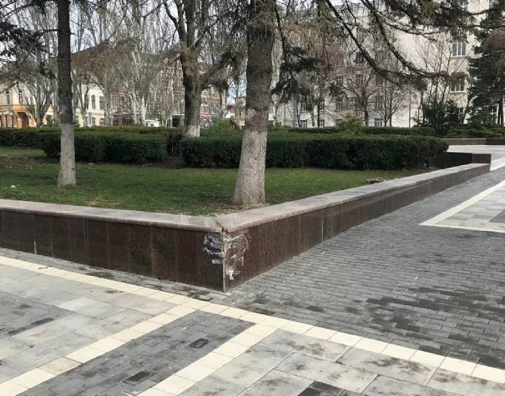 Елена Хатламаджиян на своей странице в Facebook**** выложила снимки, сделанные накануне днем на площади Советов. На кадрах видно, что плитка на постаменте бережно закреплена скотчем.
