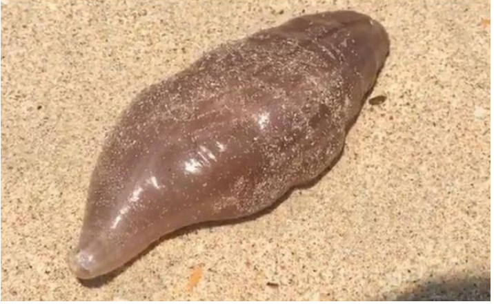 Существо грязно-розового цвета с прозрачным телом, по форме напоминающее морской огурец, похоже, выбросило на берег волной. Турист попытался отнести существо обратно в воду, но оно начало извиваться, и, попав в воду, снова вернулось на берег. На суше оно поднимало "голову" и пыталось дышать. Местные жители говорят, что в последнее время часто видят таких мутантов, но пока не могут их идентифицировать. Некоторые предполагают, что это морская пиявка или морской слизень или даже существо внеземного происхождения.