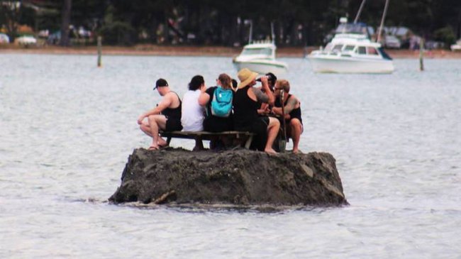 Запрет на употребление алкоголя в общественных местах действует на территории всего полуострова Коромандел на протяжении всего празднования Нового года, а нарушителей штрафуют на сумму до 250 долларов. Полиция, конечно, патрулировала полуостров в целях поддержания порядка, но ничего не могла поделать с группой молодых людей, которые употребляли алкоголь на крошечном островке, построенном ими совсем недалеко от берега в городе Уангамата (Whangamata).