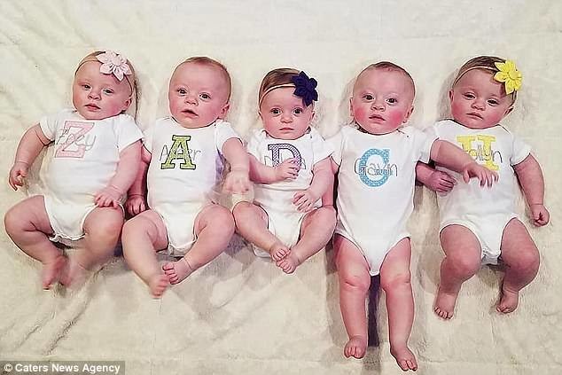 В прошлом году 30-летняя Бриана и 27-летний Джордан Тёрнер из Кентукки стали родителями пяти близнецов — трёх девочек и двух мальчиков. Супруги рассказали, как изменилась их жизнь с появлением детей. Бриана Тёрнер долго лечилась от бесплодия, и её старания были вознаграждены — в мае 2017 года на свет появились Зои Харт, Дакота Вера, Холлин Грейс, Ашер Блейз и Гэвин Лейн. С тех пор у супругов нет ни одной свободной минуты, несмотря на помощь няни и мамы Брианы. К тому же, Джордан вышел на работу уже через неделю после рождения близнецов. Джордан признаётся, что давно мечтал о детях, и тем не менее он едва не упал в обморок, узнав, что станет отцом сразу пяти малышей. Но теперь он счастлив, хотя и признаёт, что такое отцовство отнимает много сил. За день малыши выпивают 40 бутылок молока, сменяют 20 комплектов одежды и портят 60 подгузников."Как только последний ребенок будет сыт, мы возвращаемся к кормлению первого. Цикл начинается снова. Это немного похоже на конвейер."Бриана и Джордан рассказывают, что все их дети обладают собственным характером, и они никогда не путаются в своих малышах.