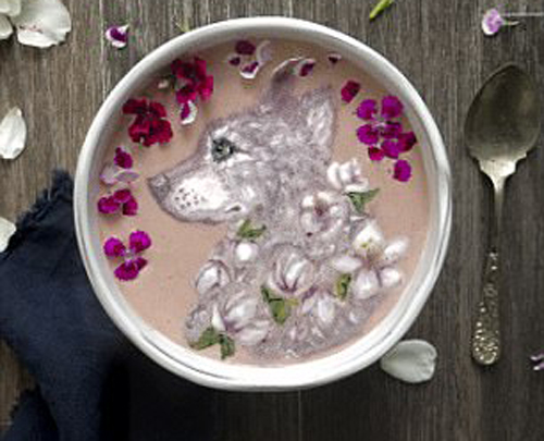 Дело в том, что портреты животных, знаменитостей, персонажей фильмов и другие рисунки являются на самом деле чашами со смузи, так что они полностью съедобны. Такую красоту Хейзел творит, используя деревянные шпажки и кухонные ножи.