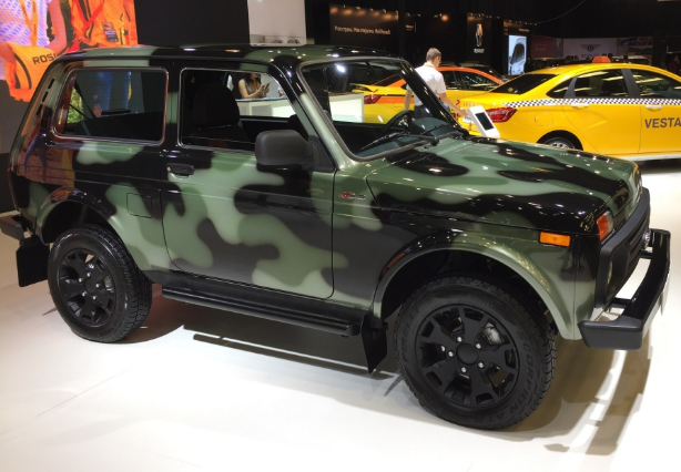 «Боевой раскрас» популярного автомобиля обойдется потенциальным покупателям в 29 тыс. рублей, предусмотрен вариант поставки с кондиционером, это обойдется покупателям в 556,9 тыс. рублей. Кузов машины, имеющей внедорожные технические характеристики, покрыт трёхцветным камуфляжным покрытием. Lada 4x4 с оригинальной окраской доступна исключительно в лимитированной спецверсии, модель выпущена тиражом в 1,977 тыс. экземпляров. В штаб-квартире концерна объяснили, что окраску кузова начинают с окраски чёрным цветом, вслед за этим наносят пятнистые узоры из зеленоватого металлика, имеющего два различных оттенка.