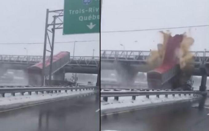 "Зрелищную" картину крушения грузовой платформы с семенами рапса, врезавшуюся в мост, запечатлел участник дорожного движения из салона автомобиля, передает Day.Az со ссылкой на Segodnya.ua.