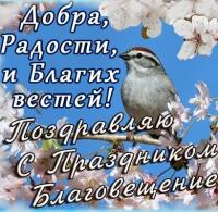 Благовещенье пришло,в каждый дом стучится, вам желаю лишь с теплом к ближним относиться.Чтобы вера в этот день только укреплялась. Чтоб во всех делах подъём, чтоб мечты сбывались.С праздником всех!!!