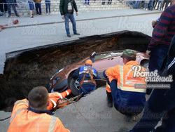 ЧП случилось в Ростове-на-Дону. Там на улице Ереванская полностью ушел под землю припаркованный внедорожник. Вину за произошедшее взял на себя Ростовводоканал, он же и занимался подъемом злополучной машины их ямы, сообщили в его пресс-службе.