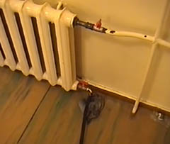 В месте отсоединенного трубопровода в батарею монтируют снабженный шаровым краном штуцер. К нему присоединяют шланг от пистолета компрессора. Второй шланг от пистолета опущен в канализацию, например, в унитаз.