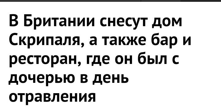 Власти Великобритании собираются снести дом Сергея Скрипаля, а еще бар и ресторан, где они с дочерью были в день отравления. Как пишет Daily Mail, произойдет это не раньше, чем через полгода, а пока эти места намерены обнести трехметровым забором, чтобы скрыть от всех. Спрятать Лондон намерен и самих Скрипалей: как стало известно накануне все тем же британским журналистам, бывшему шпиону и его дочери предложат ехать в США под чужими именами, как только оба они поправятся.