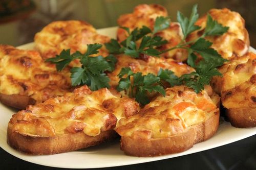 Лист с бутербродами поставить в духовку, которую разогреть до 160 градусов. Через 20 минут наши будетбродики будут готовы. И их можно подавать к столу.