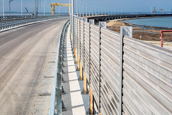 «Шумопоглощающие экраны появятся по обе стороны автомобильной трассы на участках сопряжения моста с береговой линией, — сообщил замначальника Федерального казенного учреждения Упрдор «Тамань» Кайрат Турсунбеков. — Кроме того, экраны монтируют вдоль самого мостового сооружения со стороны Азовского моря на участке протяженностью более 700 метров от таманского берега, а также со стороны керченского мыса Ак-Бурун на участке протяженностью более 1,3 километра от крымского берега».