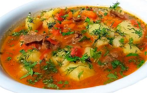 11. Добавить картофель к мясу и овощам. Посолить, поперчить. Варить до готовности картофеля.