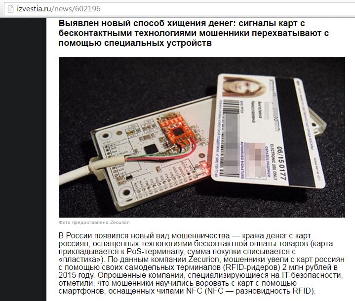 Недавно появился новый способ мошенничества, при котором злоумышленники перехватывают сигнал с карты с помощью специальных устройств: