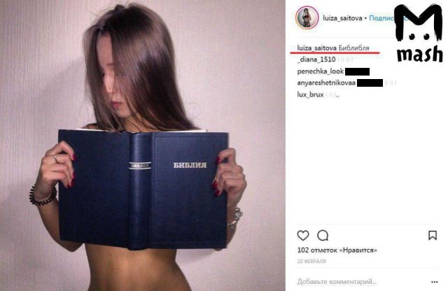 22 февраля на третий день после начала Великого поста 16-летняя дочь мэра города Сосновки Кировской области Наиля Саитова Луиза выложила в Инстаграм фотографию, на которой прикрывает грудь Библией.