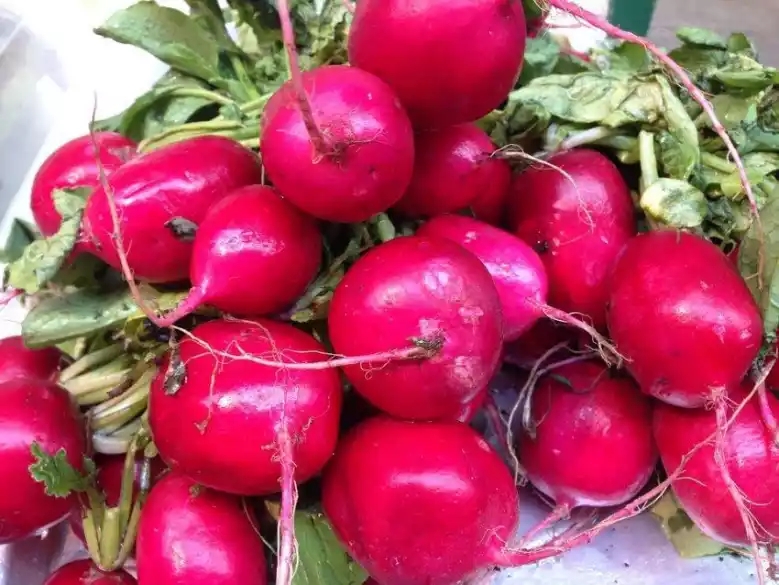 В редиске содержатся витамины группы В, магний, железно, кальций, калий, фосфор и другие полезные микроэлементы. Употребление корнеплода способствует очищению кишечника, улучшению пищеварения, снижению отечности конечностей и лица, ускорению метаболизма. Кроме этого, редис может служить компрессом на спину, который прикладывают, чтобы избавиться от радикулитных болей, а также устранять головную боль за короткий период времени.