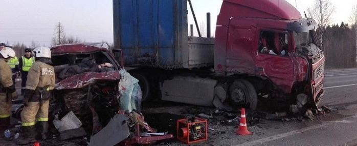 Напомним, сегодня в 18:10 на 110 км автодороги Вологда – Новая Ладога фура «Вольво» столкнулась с микроавтобусом «Фольксваген Транспортер». Из-за ситуации на дороге фура начала тормозить и в результате прицеп вынесло на полосу встречного движения, по которой двигался микроавтобус – на месте аварии погибли семь человек, в том числе шофер «Фольксвагена».