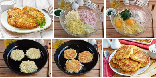5. В горячее масло ложкой выкладывайте картофельную массу, жарьте на среднем огне до золотистой корочки.