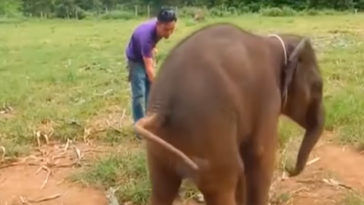 Этому крошечному слоненку так понравилось играть со своим смотрителем и большой синей корзиной, что он попросту не смогу сдержать своих эмоций. Это очень похоже на игру с маленькими детками, когда им так нравится происходящее, что они не могут сдержать смеха.