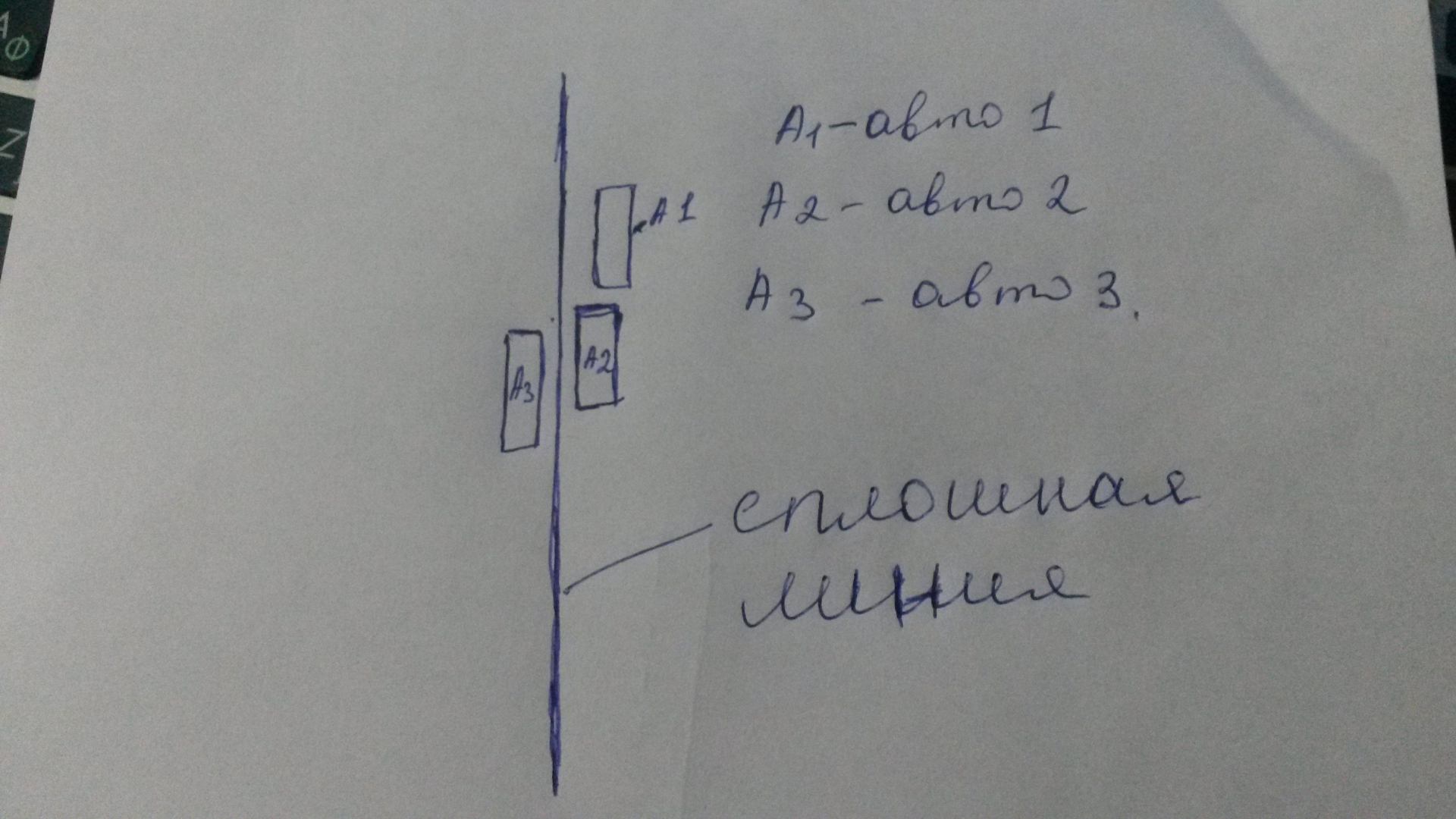 Совершал обгон на авто 3, когда мы почти сравнялись с авто 2, он тоже вдруг решил обогнать авто 1 и врезался в меня. Кто виноват? Местность сельская, подъем.