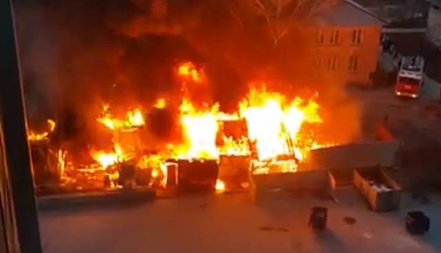 Огонь быстро распространился по бамбуковым строительным лесам, которые установили ...
