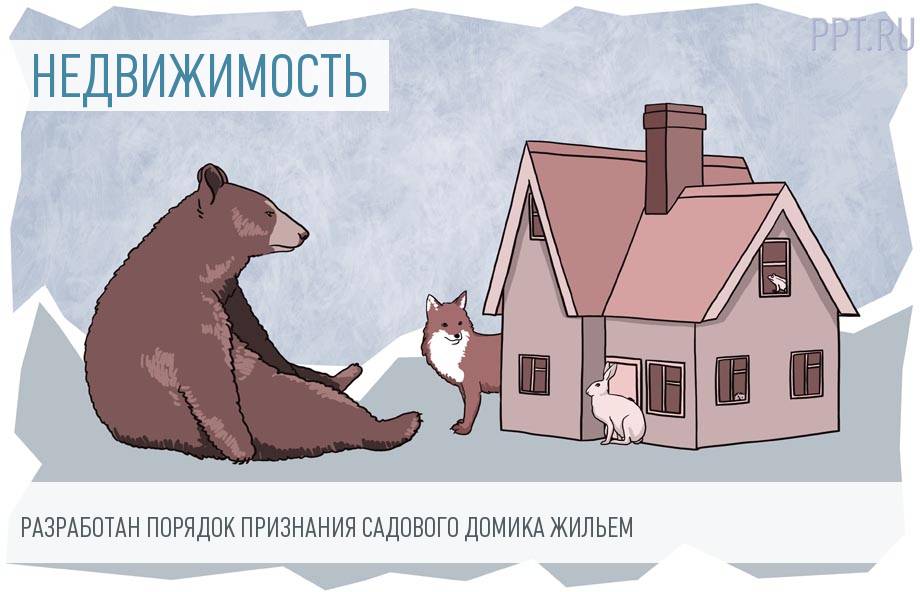 Документальное переоформление дачных и садовых домиков в жилые дома давно волнует граждан и юристов. Ведь многие бывшие советские садовые и дачные товарищества превратились в коттеджные поселки, в которых круглый год живут люди. Но поскольку по документам они жилыми не являются, местные власти не должны обустраивать инфраструктуру: строить детские сады, школы и поликлиники. Единственный выход — признать дом жилым. Минстрой разработал порядок, как это сделать.