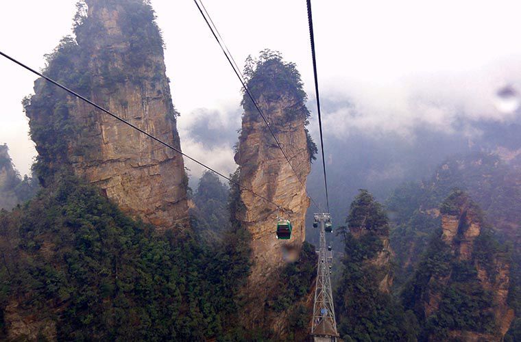 Гора Тяньмэнь в национальном парке Чжанцзяцзе, где снимался «Аватар», известна самой высокой в мире пещерой Небесные Врата, скрытой в облаках и тумане. К пещере проложено несколько маршрутов, один другого страшнее. Проще всего воспользоваться канатной дорогой, которая буквально уходит в облака. Ее длина — 7,5 км, а угол подъема местами составляет 70°. Поездка сопровождается перепадами давления и температуры.