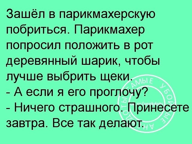 А что когда бреются шарик в рот кладут? Не знала! Но смешно! Завтра принесёте - можете его даже не мыть...