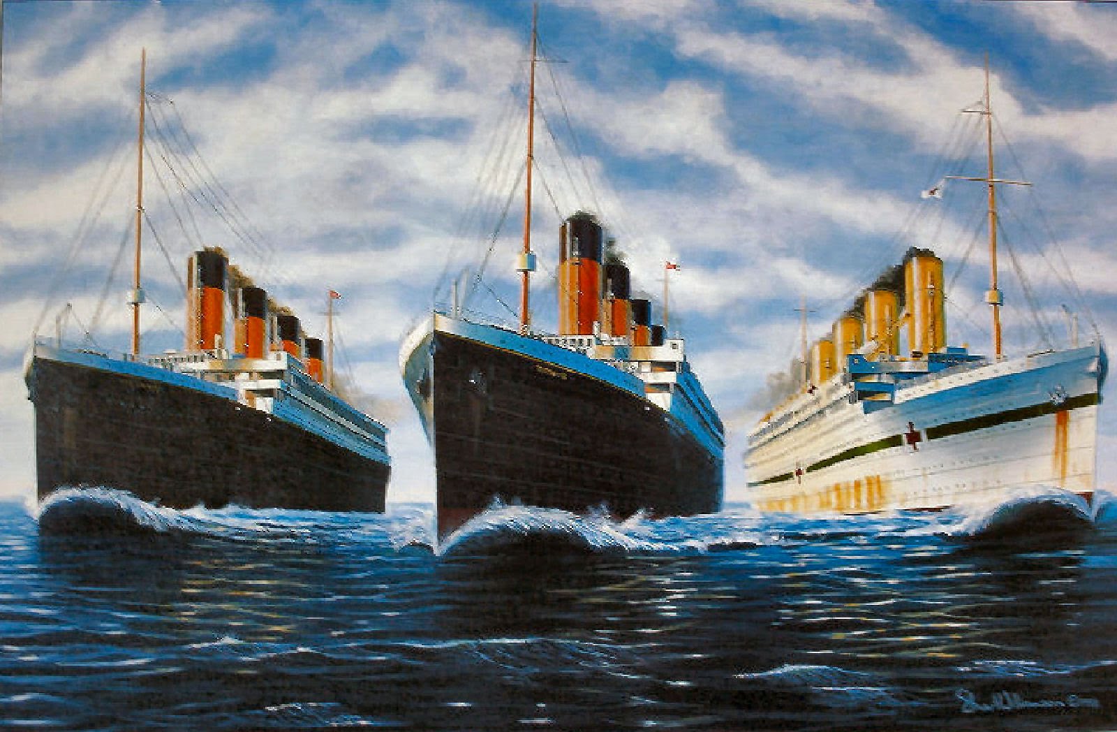В 1911 году компания спустила на воду трио огромных, роскошных лайнеров-братьев: "Олимпик", "Титаник" и "Британик". В сентябре 1911 года Вайолет Джессоп работала на борту "Олимпика", который столкнулся с небольшим крейсером в водах Южной Англии. После крушения стюардесса перешла на борт "Титаника" как раз ко времени его первого и последнего трансатлантического плавания в 1912 году. Во время Первой мировой войны Вайолетт была медсестрой Красного креста и работала на "Британике", который был переоборудован в госпиталь. В 1916 году "Британик" подорвался на немецкой мине и ушел ко дну меньше чем за час. Несмотря на повреждения, в кораблекрушении погибли всего 30 человек, а карьера Вайолетт Джессоп ко дню ее выхода на пенсию составила 42 года работы стюардессой.