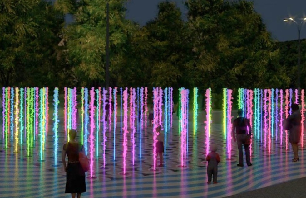 Для создания светового эффекта планируется использовать несколько сотен встроенных в основание фонтана лампочек. Каждые 10 секунд они будут менять свой оттенок — от холодного белого до яркого неонового.