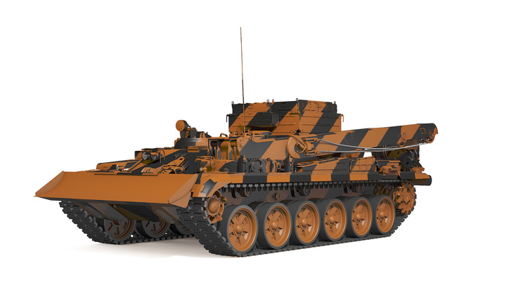 Как понятно из названия, БРЭМ-1 предназначена для эвакуации поврежденной тяжелой бронетехники с поля боя. Двигатель машины выдает 1 тысячу лошадиных сил, а топлива в баках хватает на 700 километров.