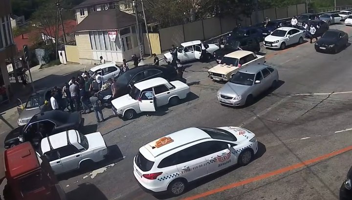 Танцплощадкой послужил перекресток в сочинском Дагомысе, где ближе к полудню в минувшую пятницу, 13 апреля, и остановились с десяток украшенных бантами легковых автомобилей. На кадрах видно, как двое водителей перекрывают трассу недалеко от пешеходного перехода, а их коллеги организуют своего рода коридор для черного Mercedes-Benz. и вынуждают остановиться других автовладельцев. На нем-то и прибыл основной участник дорожного торжества, который после поздравлений вместе с гостями пустился в пляс.