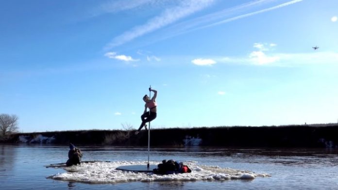 Эффектное видео танца на пилоне сняли супруги Корженевские в Воронеже. Девушка исполнила танец на шесте, который был установлен на дрейфующей льдине.