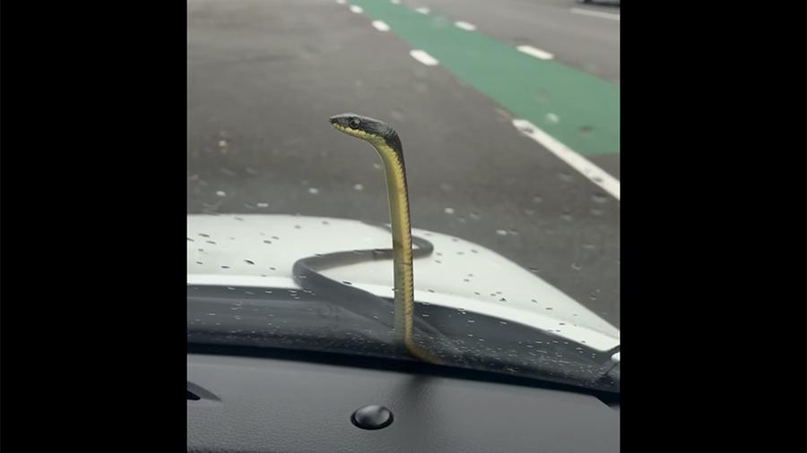 В Австралии змея забралась на машину и заблокировала водителя в салоне